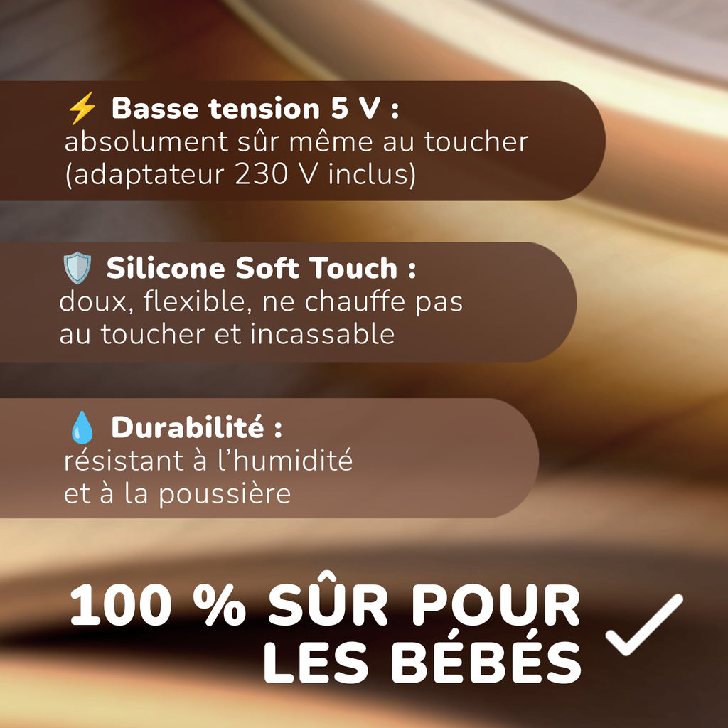 - Lumière LED douce et sûre – préserve les yeux de l’enfant;