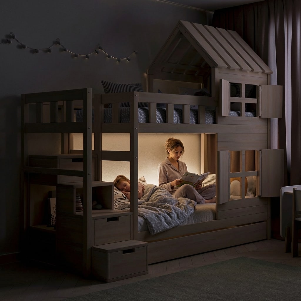 La conception supporte jusqu’à 120 kg par couchage, permettant aux parents de s’asseoir confortablement à côté de leur enfant. Ce modèle convient aux enfants dès l’âge de trois ans, se monte aisément grâce aux instructions fournies et accompagnera la famille pendant de nombreuses années.