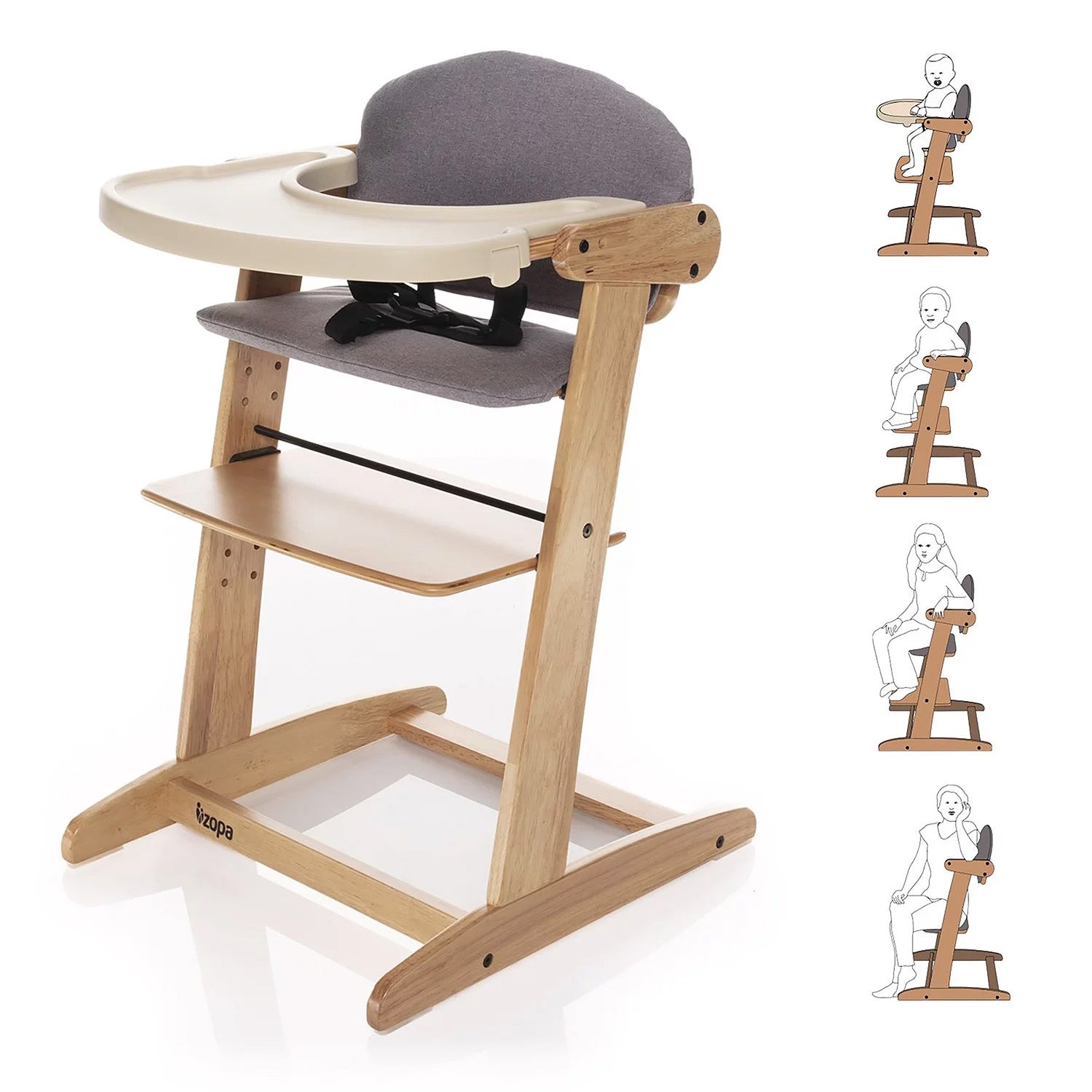 La structure solide en bois de haute qualité assure une grande durabilité. Pour une sécurité maximale pendant les repas, le rembourrage est équipé d’un harnais de sécurité à 5 points.