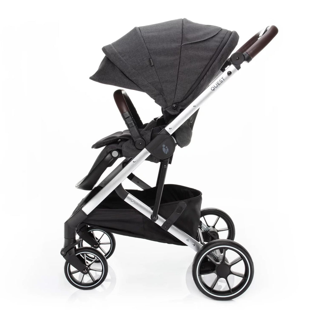 La nacelle de la poussette Quest offre un grand espace et un rembourrage doux. La partie de la tête peut être réglée sur 4 positions, idéale en cas de reflux de l’enfant. Dès que l’enfant se retourne sur le ventre pour explorer, il profite d’une grande fenêtre de ventilation sur l’avant de la nacelle. Celle-ci peut être fermée facilement. Une fois retirée du châssis, la nacelle peut également servir de berceau.
