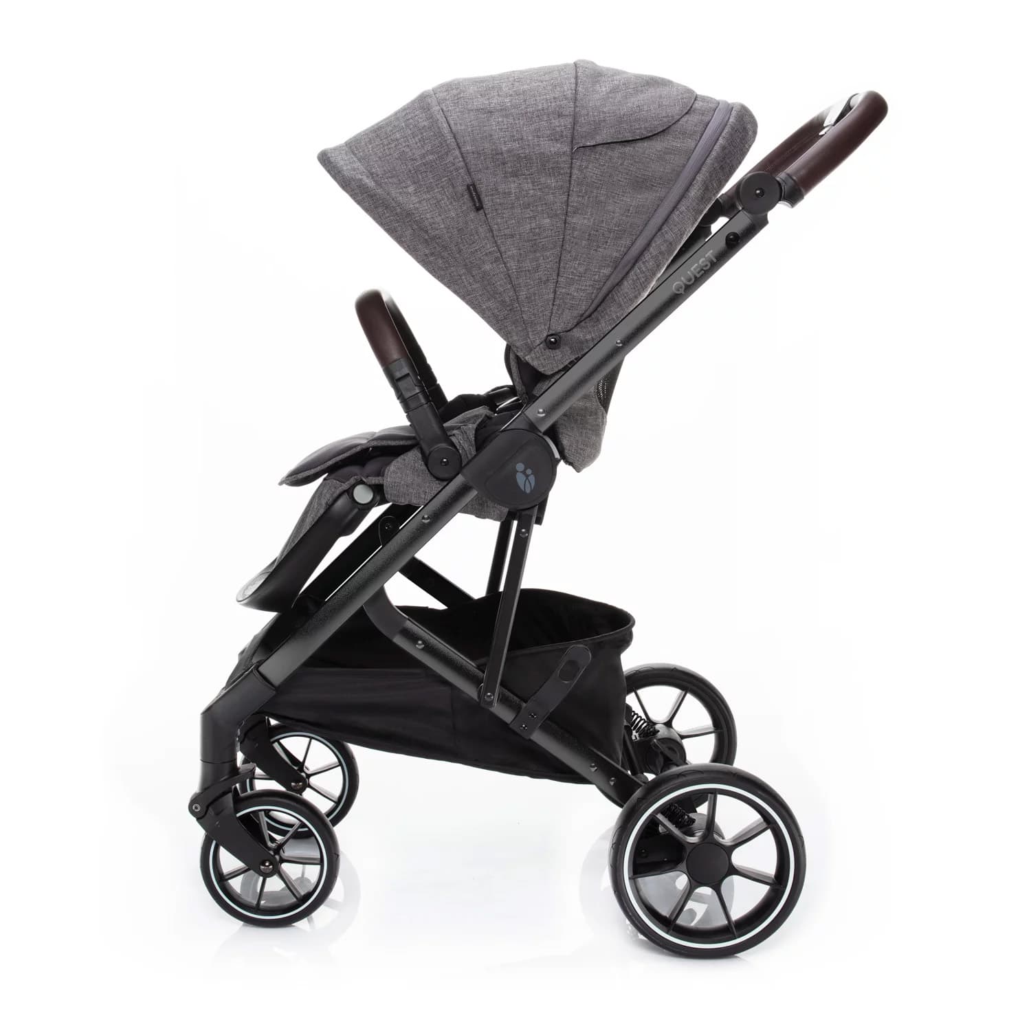 La conduite confortable de la poussette QUEST est assurée non seulement par une suspension efficace, mais aussi par la grande taille des roues. Les roues avant ont un diamètre de 7 pouces, et les roues arrière de 9 pouces.