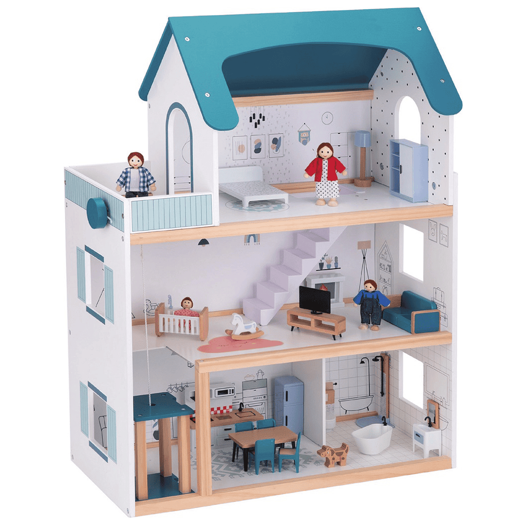 Bienvenue dans la maison de poupées Barbora ! Un lieu où les histoires n’attendent que d’être découvertes. Grâce aux espaces généreux, il y a beaucoup de place pour aménager. Avec la famille de poupées, les enfants découvrent tout ce qui fait partie d’une maison moderne – cuisine, salle de bain, chambre avec balcon, salon et même un ascenseur fonctionnel !