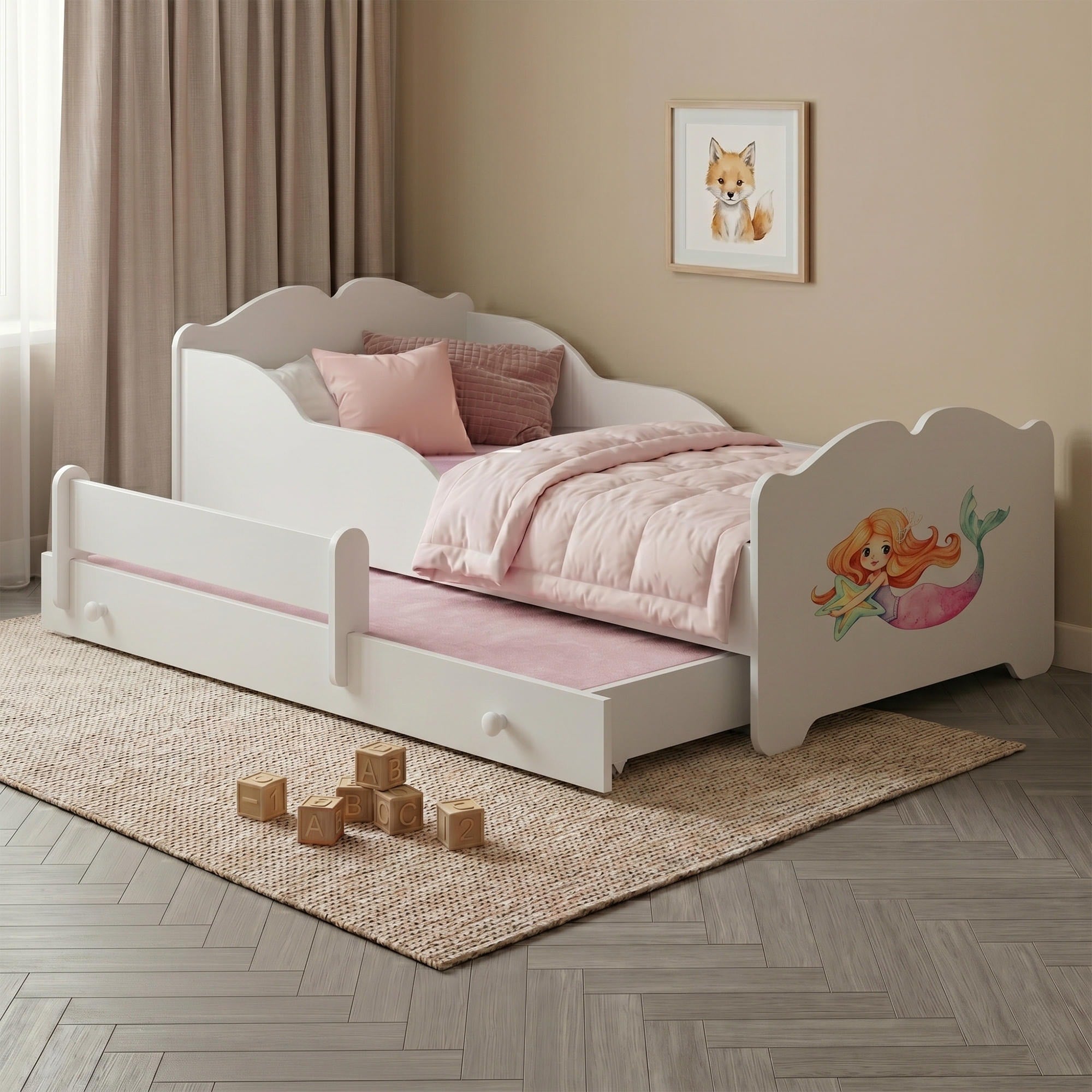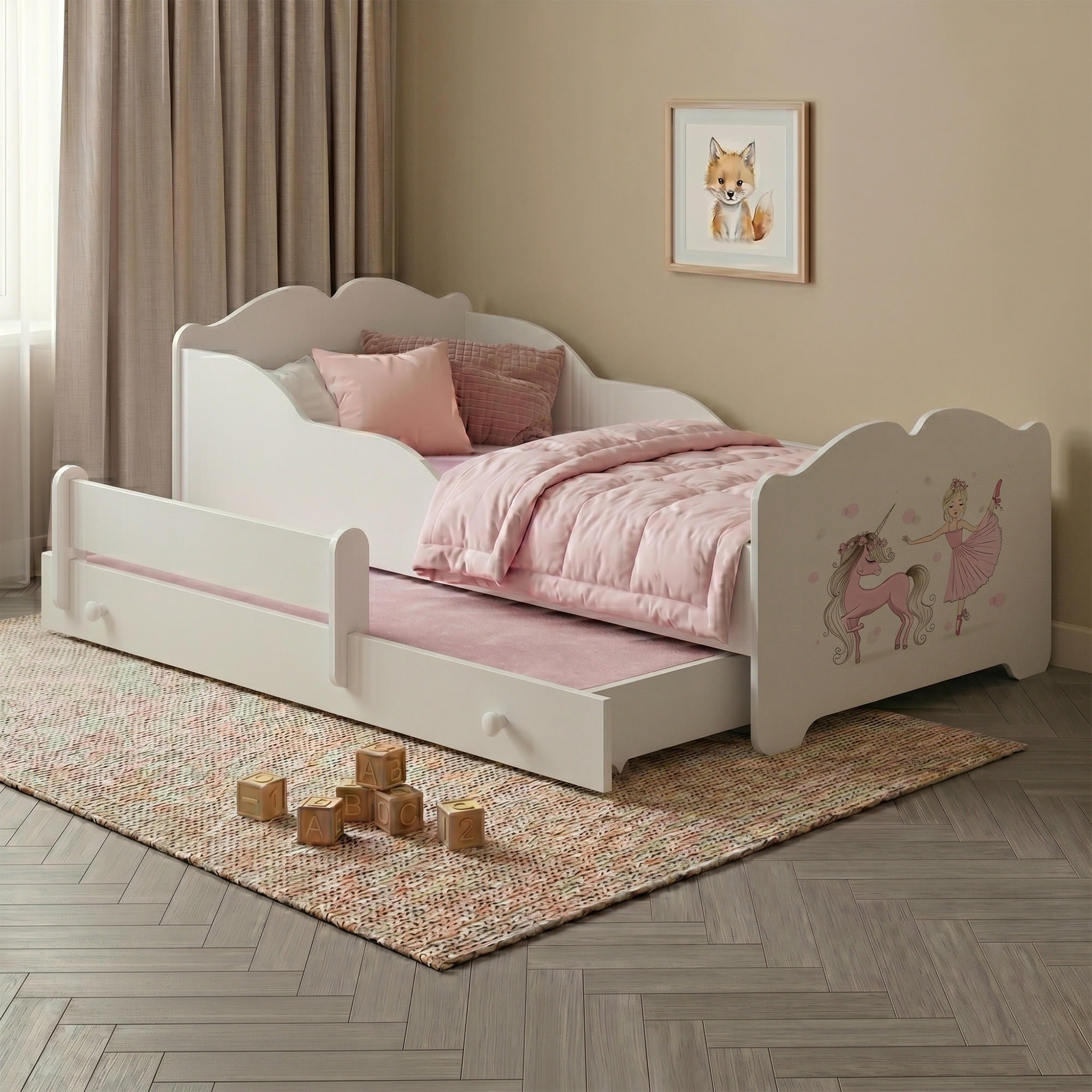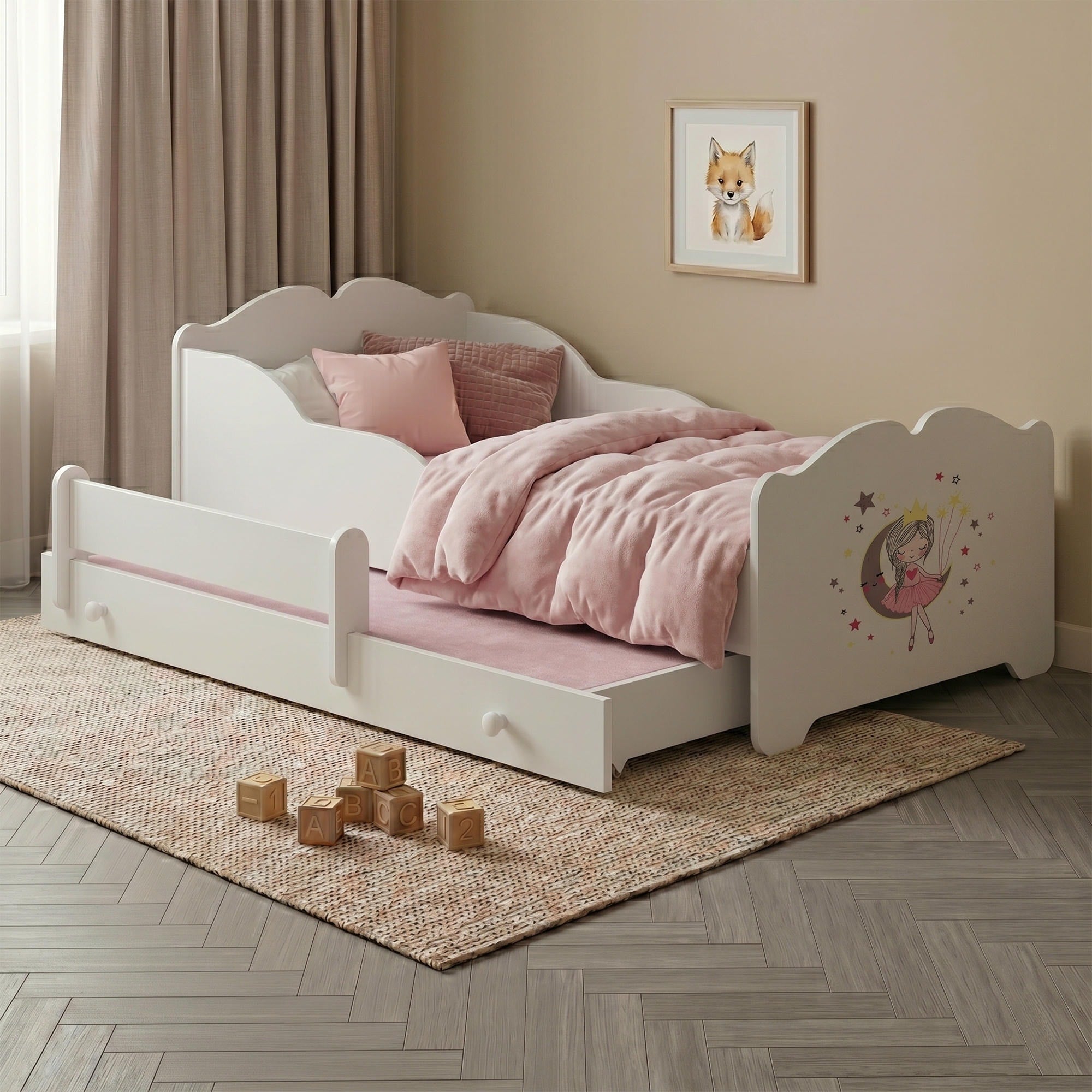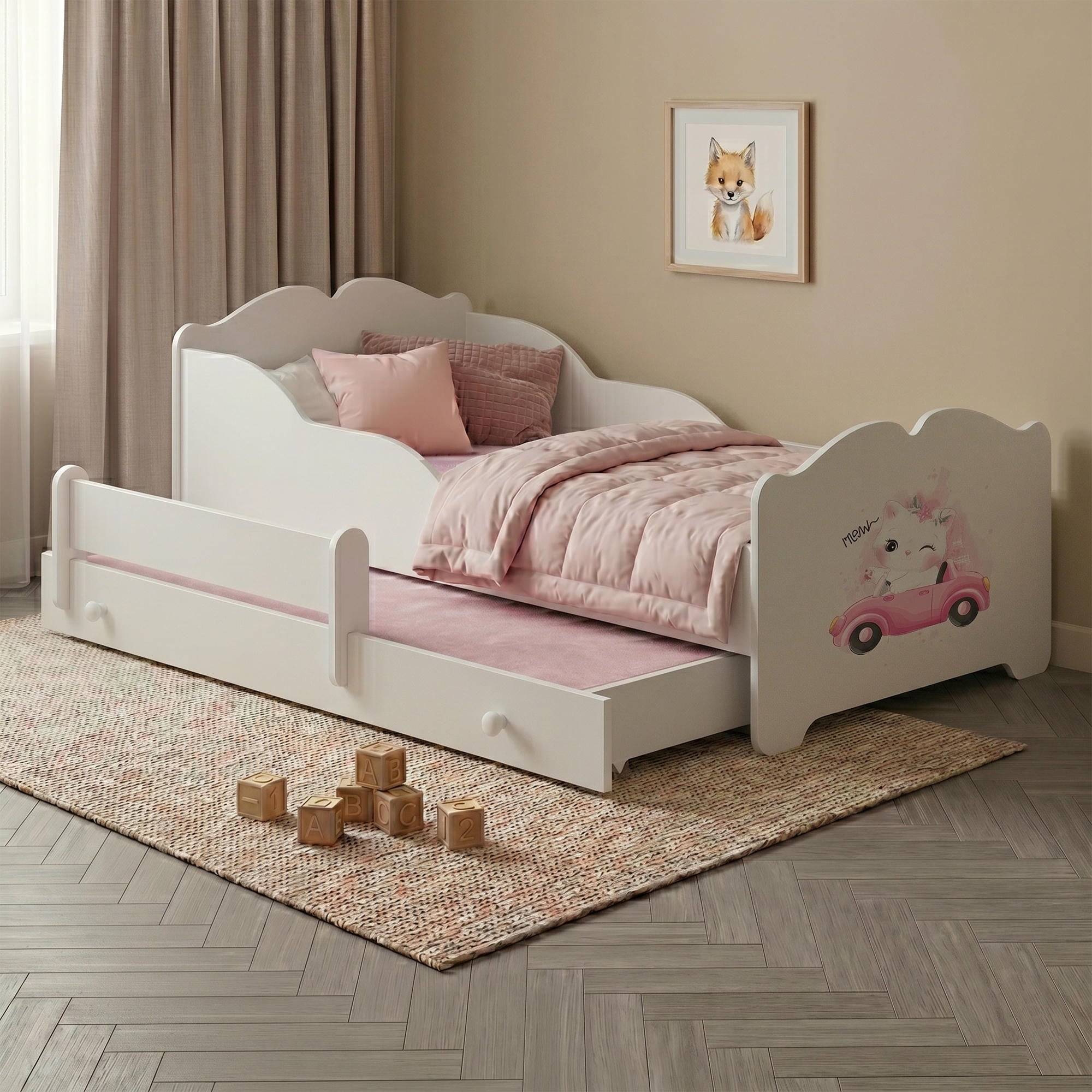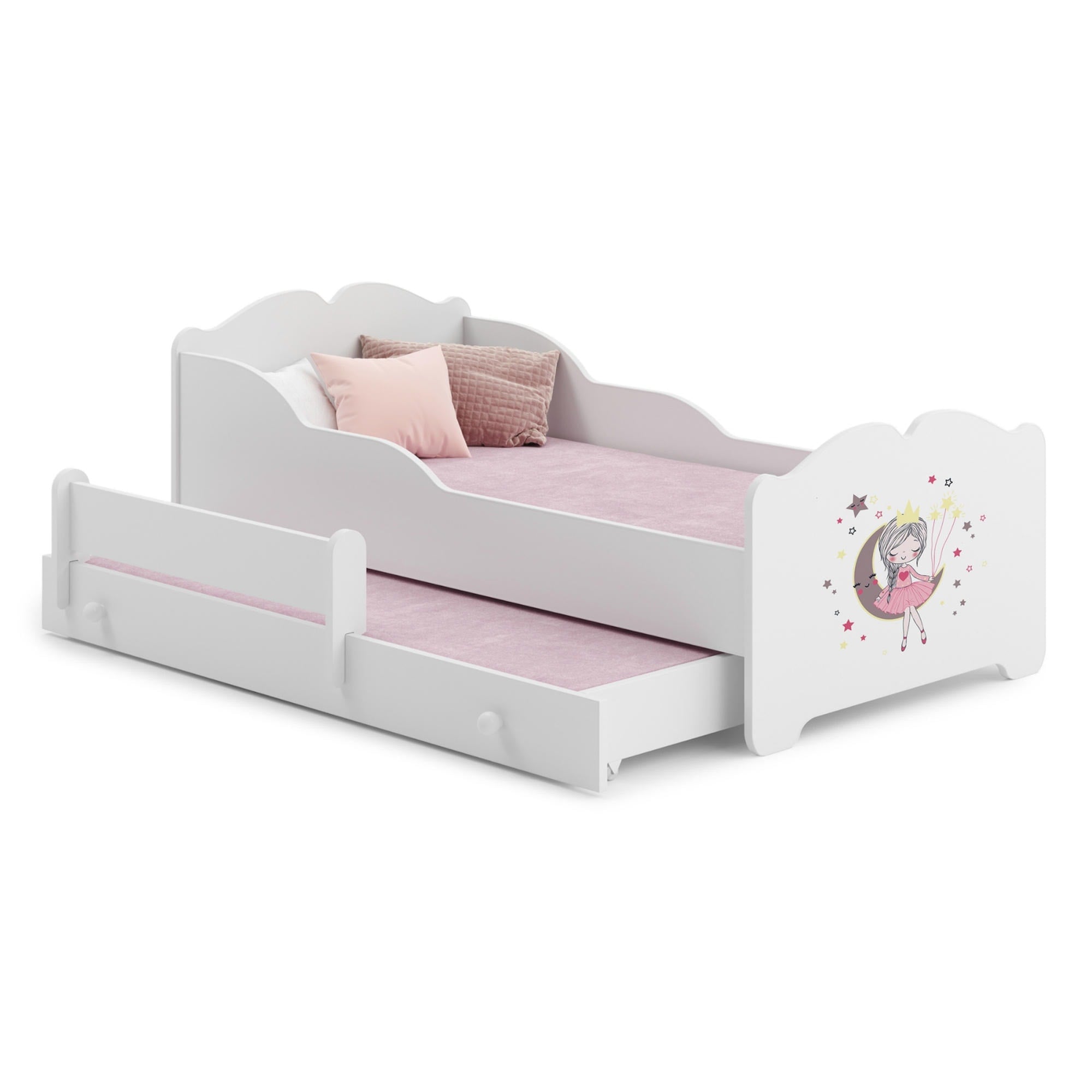 Lit enfant ANNA-MAX avec lit d’appoint 145 × 80 cm – avec motif et matelas