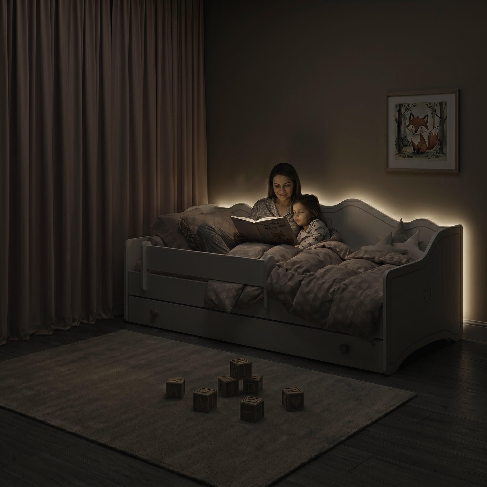 Lit enfant EMMA avec barrière de protection et tiroir de rangement