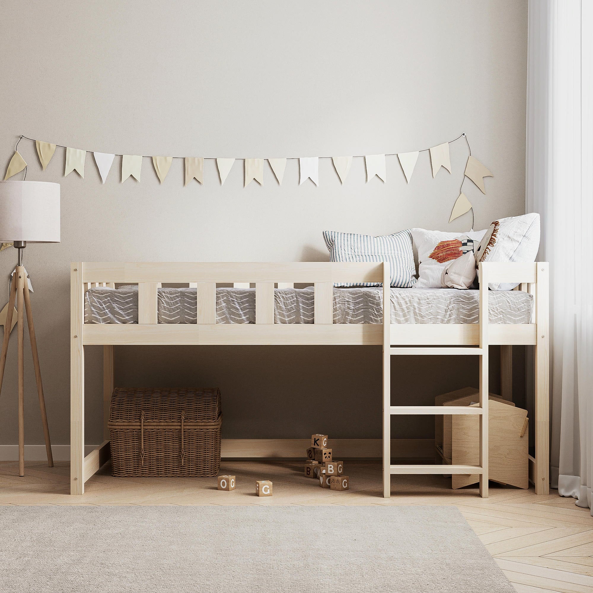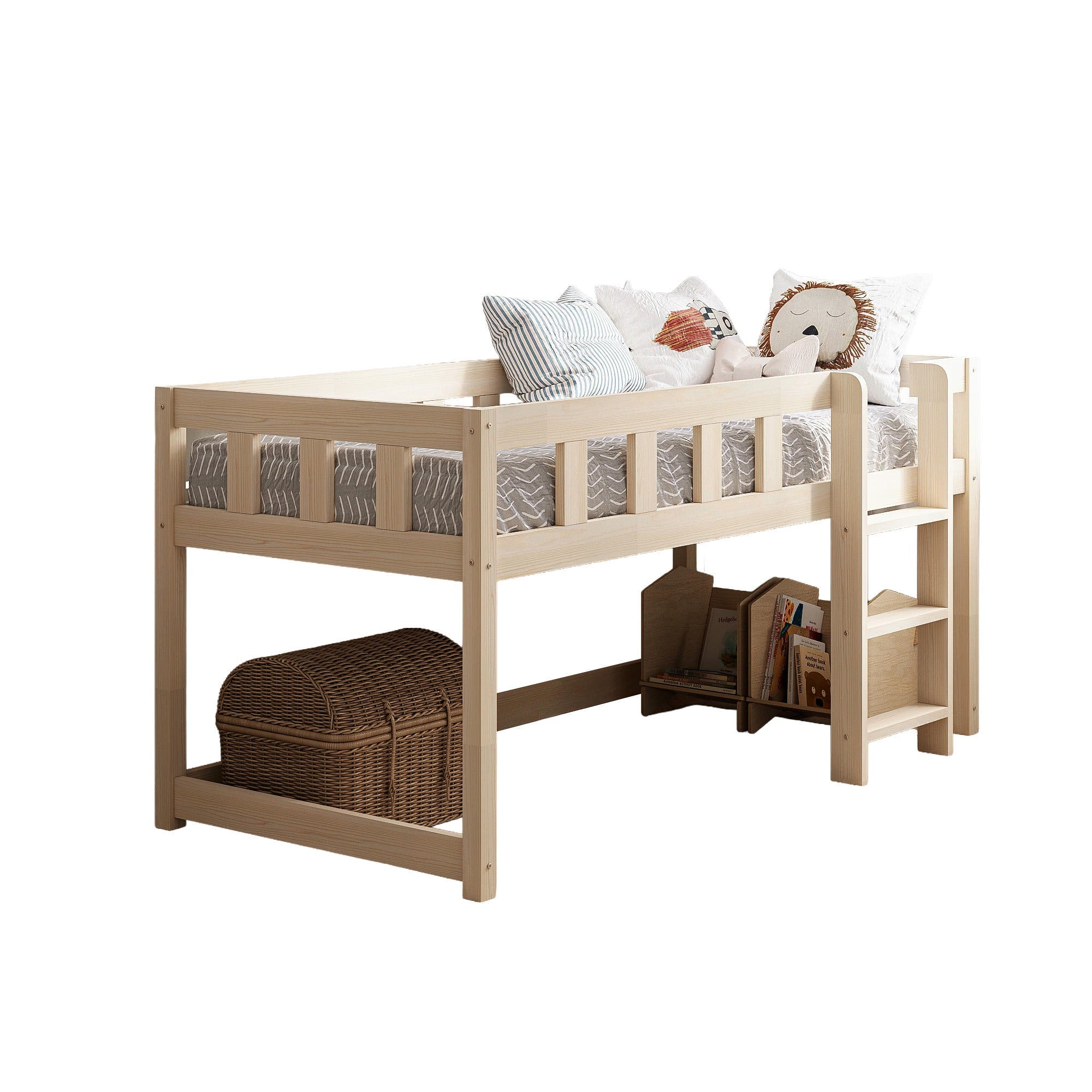 Fabriqué en bois massif naturel et traité avec un vernis à l’eau hypoallergénique, il garantit sécurité et durabilité. Sa conception basse facilite l’accès et offre une sécurité supplémentaire pour les plus petits.