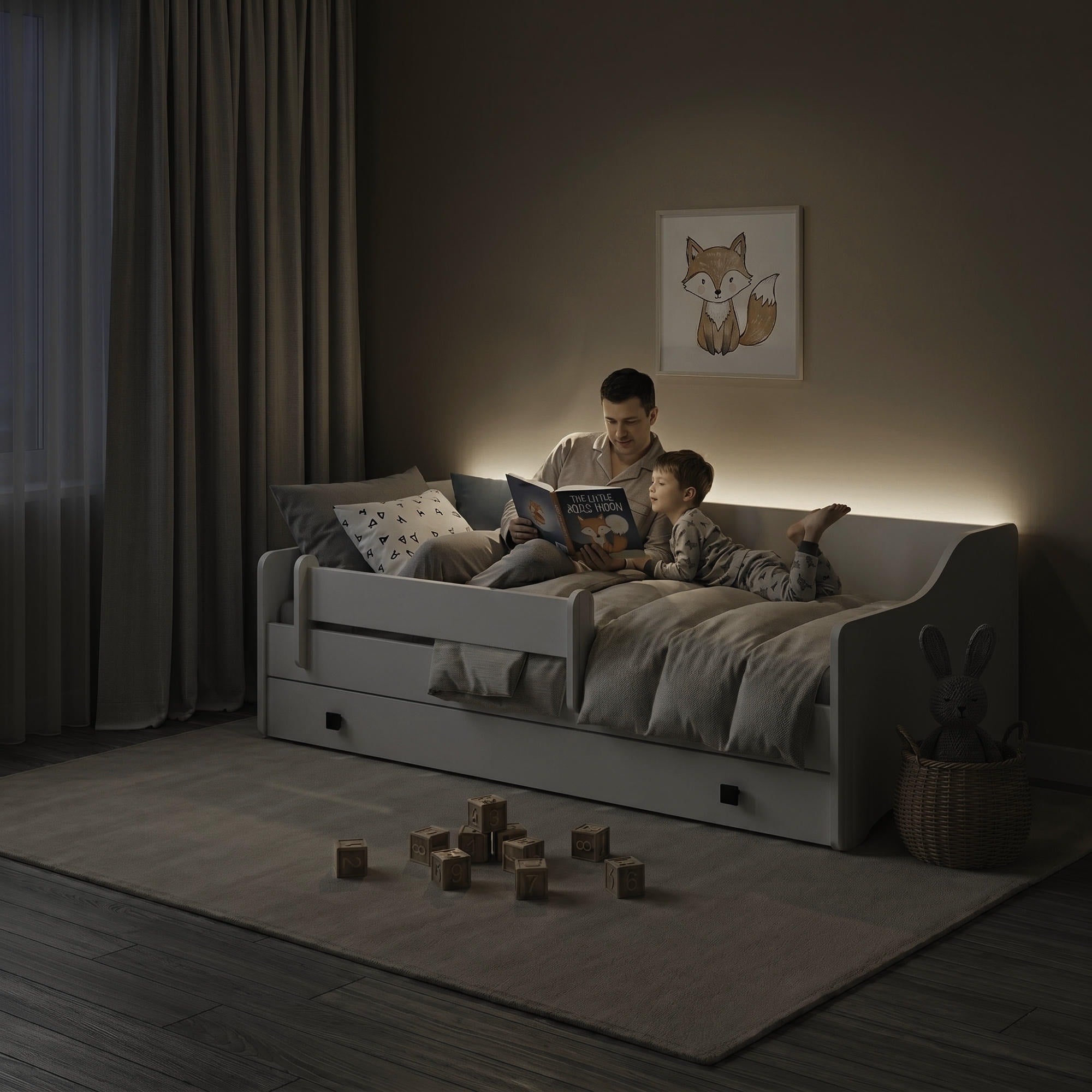 Lit enfant ERYK avec barrière de protection et tiroir de rangement - 160 × 80/180 × 80 cm
