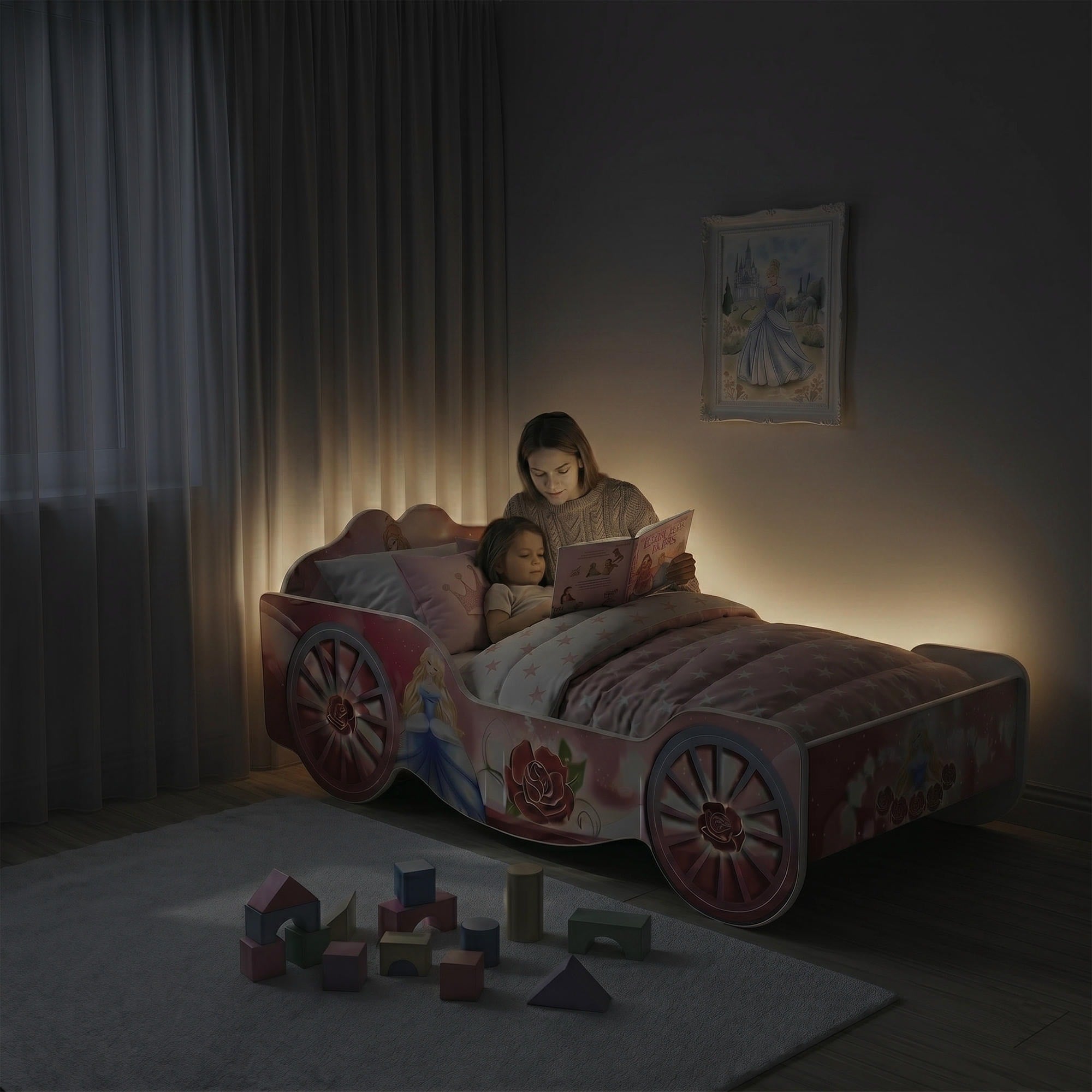 Le lit enfant en forme de carrosse est un modèle élégant pour la chambre d’une petite fille et crée une atmosphère féerique. Son design inspiré de l’univers des princesses fait de ce lit non seulement un endroit confortable pour dormir, mais aussi un véritable élément décoratif dans la pièce. La structure stable est fabriquée en panneau de meuble de haute qualité et supporte une charge allant jusqu’à 110 kg. Pour un confort optimal, le lit est équipé d’un sommier FLEX à lattes souples ainsi que d’un matelas en mousse de 7 cm d’épaisseur avec housse amovible. Les bords arrondis avec finition en PVC et les barrières latérales de protection augmentent la sécurité au quotidien.